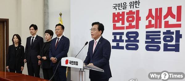 ▲ (서울=연합뉴스) 김주형 기자 = 국민의힘 송언석 비상대책위원장 겸 원내대표가 2일 국회에서 비상대책위원장 취임 기자회견을 하고 있다.